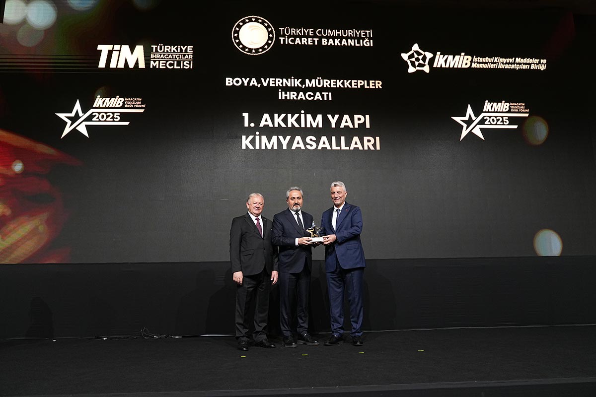 Akkim Yapı Kimyasalları, ihracattaki istikrarlı büyümesini bu yıl da İstanbul Kimyevi Maddeler ve Mamulleri İhracatçıları Birliği (İKMİB) “İhracatın Yıldızları” ödülleriyle taçlandırdı. Şirket, Boya, Vernik, Mürekkepler kategorisinde ise 1.’lik; Yapıştırıcılar, Tutkallar, Enzimler kategorisinde 3.’lük elde ederek sektöründeki güçlü konumunu bir kez daha ortaya koydu.