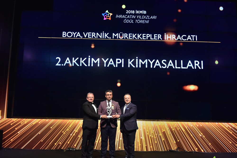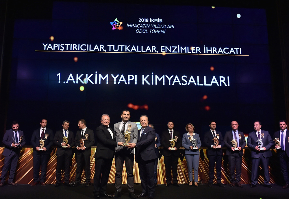 Türkiye İhracatçılar Meclisi’nin (TİM) 2018 yılı verilerine göre Akkim Yapı Kimyasalları, Yapıştırıcı ve Tutkal ürünleri kategorisinde liderliğini sürdürerek tekrar Türkiye İhracat Şampiyonu oldu. Boyalar, vernikler ve Müstahzarları kategorisinde ise geçen yıla göre bir sıra daha yükselerek en fazla ihracat yapan ikinci firma oldu.